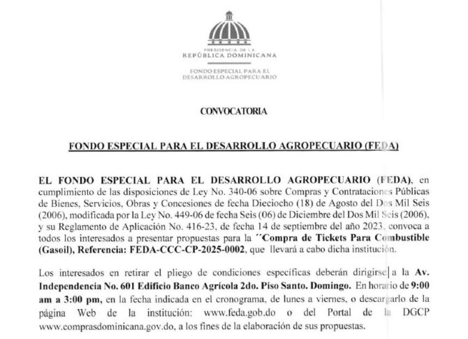 Convocatoria para la Compra de Tickets para Combustible (Gasoil), Referencia: FEDA-CCC-CP-2025-0002.”